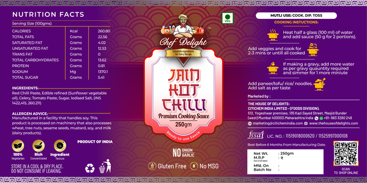 Chef Delight Jain Hot Chilli Sauce